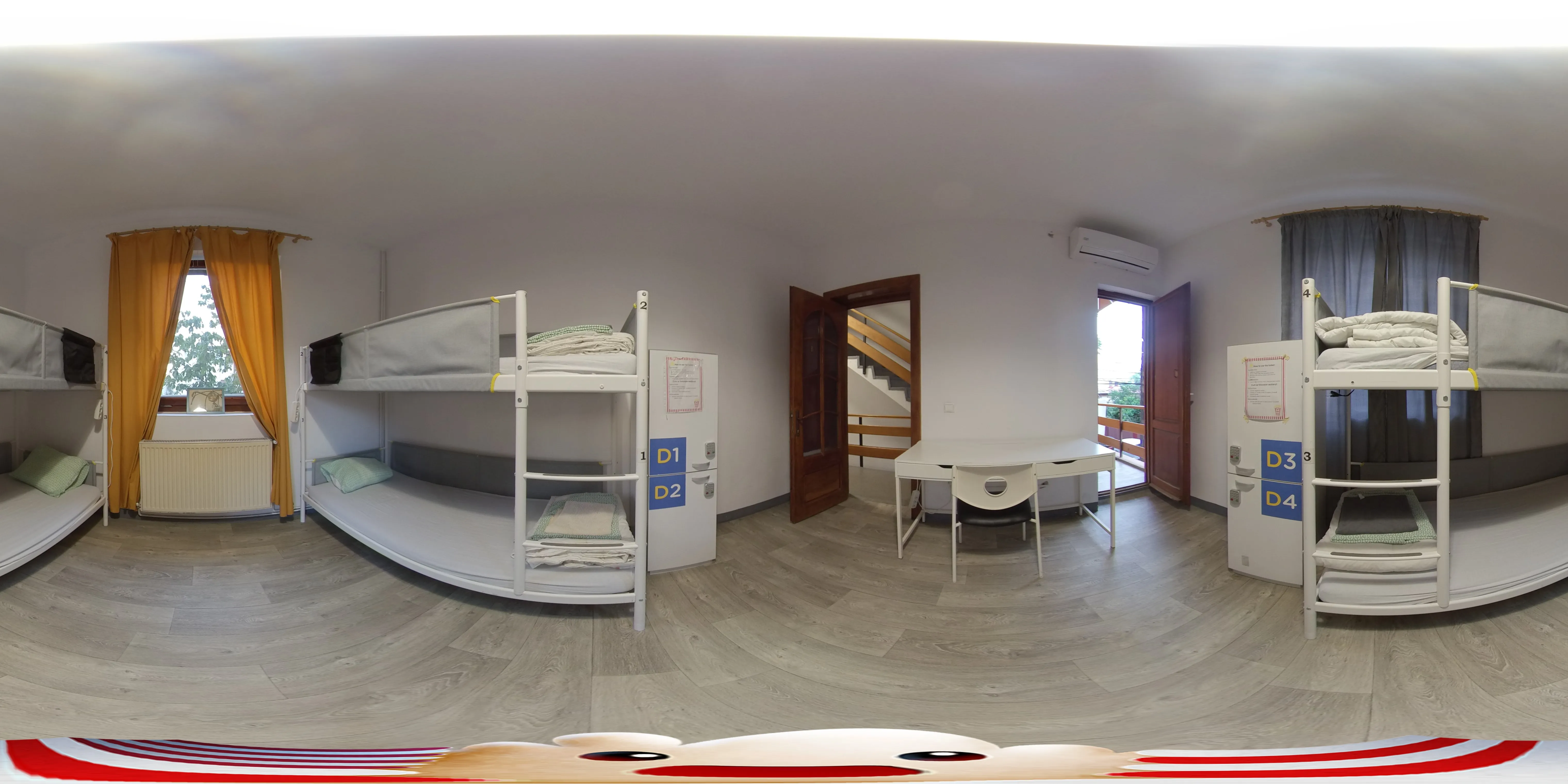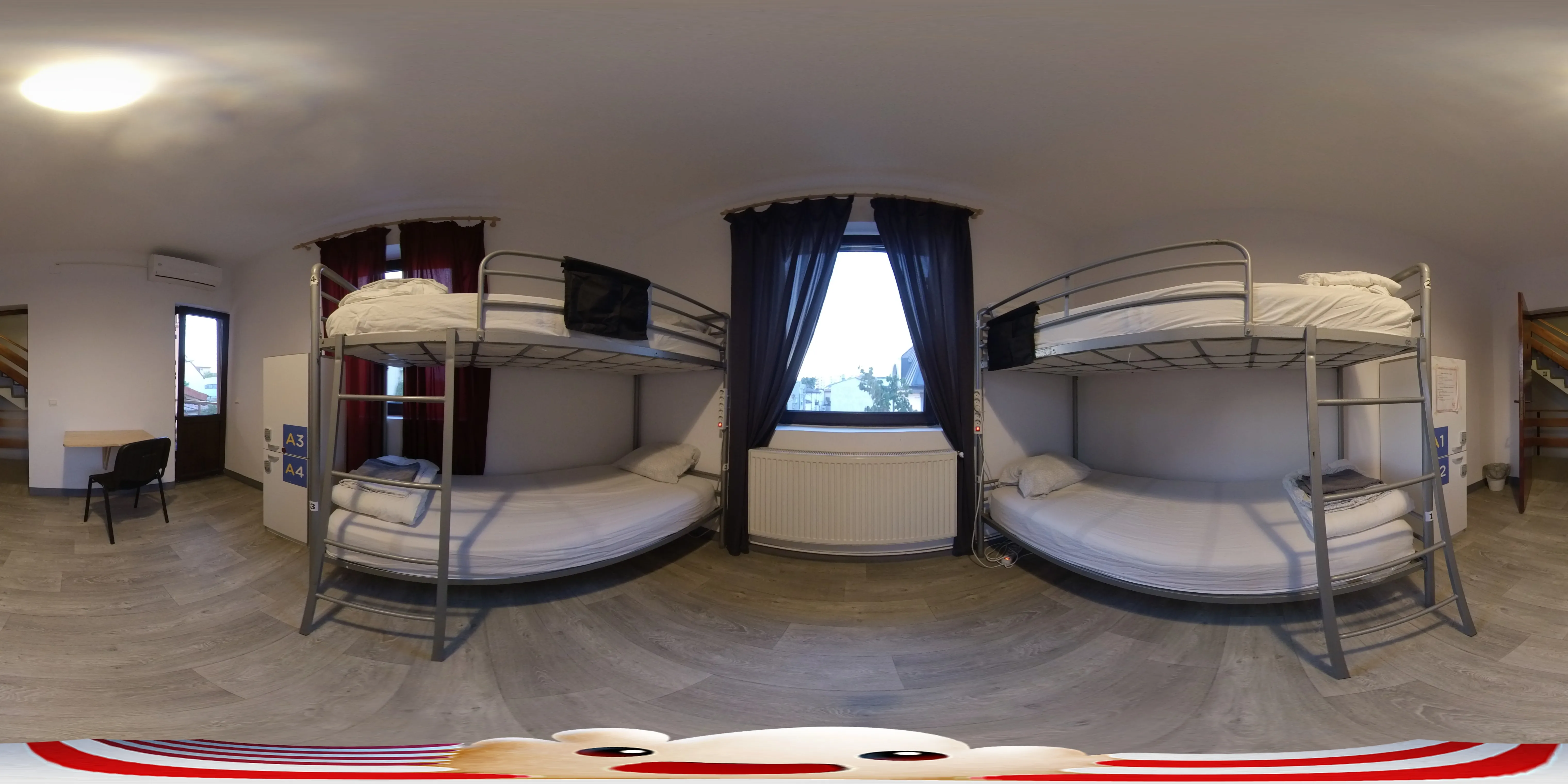 बुखारेस्टको गारा दे नोर्द नजिकैको Popcorn Hostelमा बो-विन्डो र बार्दलीको ढोकासहितको ४ ओछ्यानको डर्म।